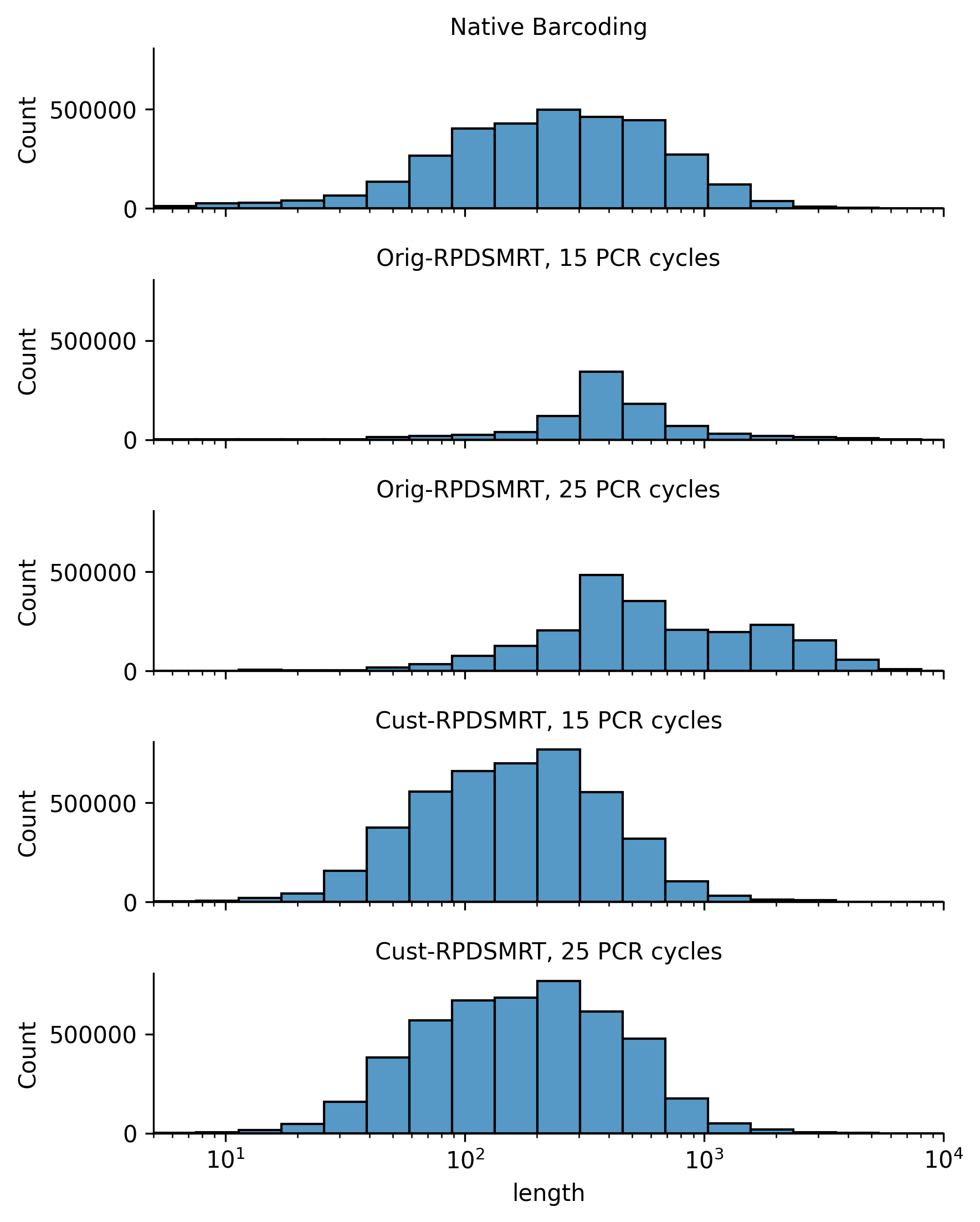 Figure 6: Read length histogram for each protocol